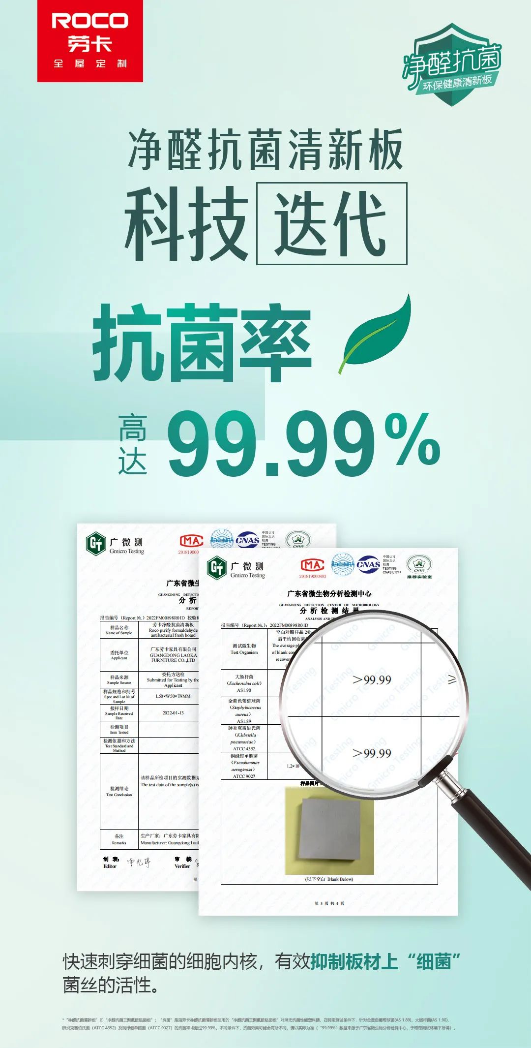 定制行業(yè)18載,勞卡對環(huán)保健康始終高度重視,2022年全新推出的凈醛抗菌清新板,打響凈醛抗菌保衛戰